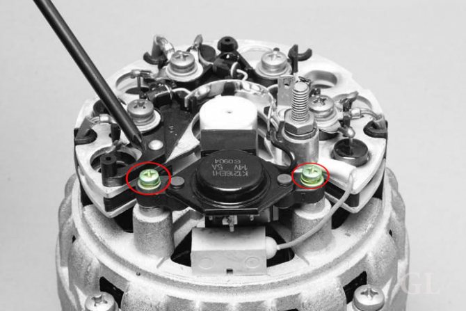 Примечание! Работу по замене данного агрегата можно выполнять как на снятом генераторе (Так даже удобней), так и на установленном (Если вы решите его всё же снять, то в таком случае изучите подробную статью по этому поводу, а называется она: «Замена генератора на автомобиле»), но в том случае если вы не захотите ничего снимать с автомобиля, то обязательно перед началом работы клеммы минус отсоедините от аккумуляторной батареи, как это сделать читайте в статье: «Замена АКБ на автомобиле», в пункте 1 всё подробно рассказано!