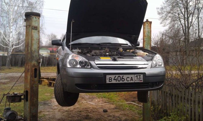 - Автомобиль загоняется в гараж с ямой, на подъемник либо на эстакаду. Это важно, поскольку вам придется получить доступ к днищу машины.