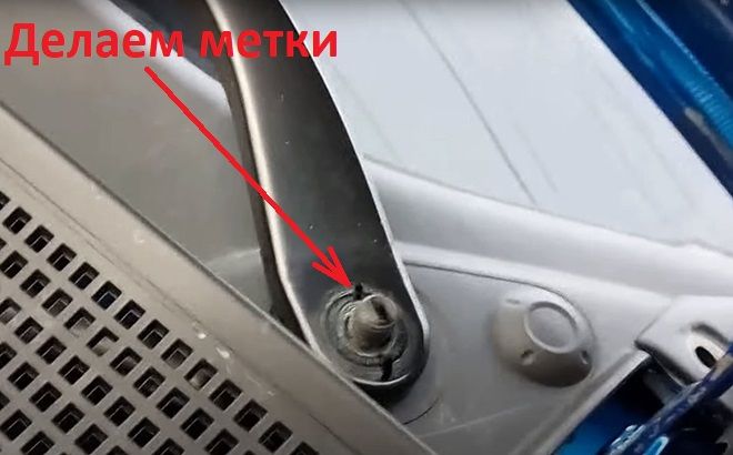 - Чтобы при установке на место дворников не возникла путаница с расположением на шлицах, рекомендуется сделать метки маркером (Фото 3).
