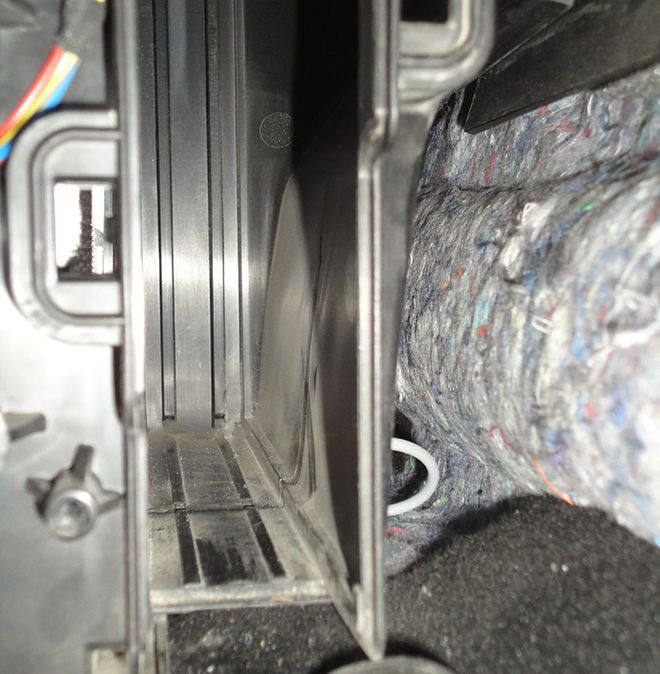 Рис.4 Ниша для установки - Далее устанавливаем новый салонный фильтр в обратной последовательности. Вначале полностью вставляем верхнюю часть фильтра, а затем толкаем нижнюю. Кажется, немного не понятным, но в процессе установки все становится легко.
