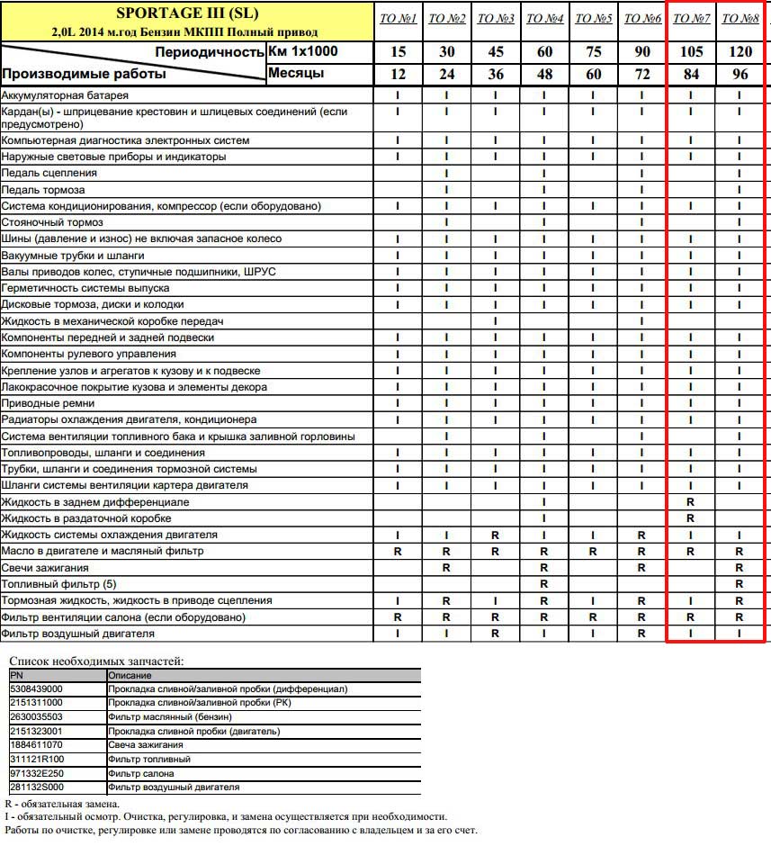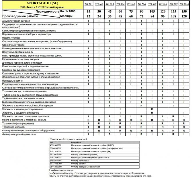 Официальный регламент ТО Sportage одинаков для любых моделей, вплоть до 4-го поколения, как для бензина Sportage, так и для дизеля: