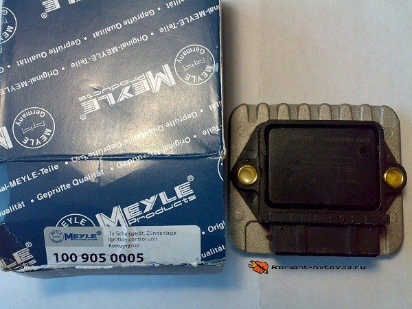 Коммутатором выполняет роль прерывателя цепи питания первичной обмотки катушки, используя для этого поступающие от датчика искрообразования управляющие импульсы. Прерывание цепи в коммутаторе выполняется выходным транзистором. Коммутатор полностью электронный, без каких-либо подвижных элементов, поэтому система зажигания – бесконтактная.