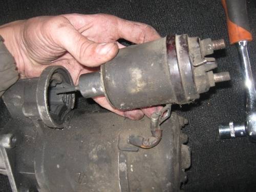 Далее будем ремонтировать тяговое реле. Ремонт может заключаться в чистке контактов или полной замене, но для начала его нужно снять.