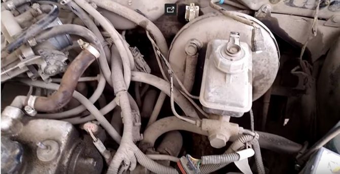 - Демонтаж вакуумного усилителя может быть осложнен из-за тормозного цилиндра. Потому советуем его снять предварительно. Другой вариант — отсоединить от тормозного цилиндра патрубки и сдвинуть в сторону на время. Тут уже сами решайте, как вам удобнее.