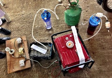Важным компонентом генератора является гидрозатвор. Для его изготовления понадобится небольшая емкость (подойдет обычная бутылка), куда перед применением устройства необходимо будет налить воду. В герметично закрывающейся крышке нужно просверлить два отверстия: в одно пропускаем трубку от генератора (ее необходимо опустить до самого дна), а во второе – еще одну трубку, по которой газовая смесь будет поступать к горелке. Отверстия в крышке гидрозатвора также должны быть герметизированы. Воду в бутылку следует наливать на ¾ ее объема.