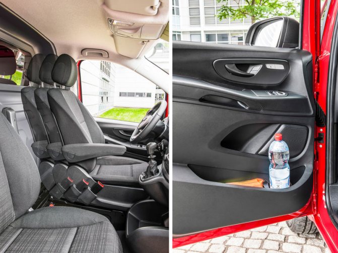 Mercedes-Benz Vito. Диапазон регулировок сидений велик даже у грузового фургона, причем задняя стенка не будет помехой в поиске удобного положения.Новая обшивка двери — с удобными нишами для мелких вещей.