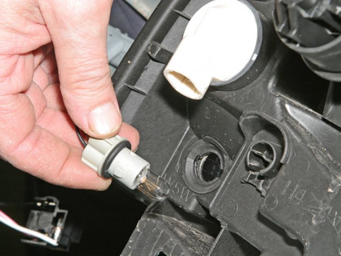 …и извлекаем патрон с лампой из корпуса блок-фары.