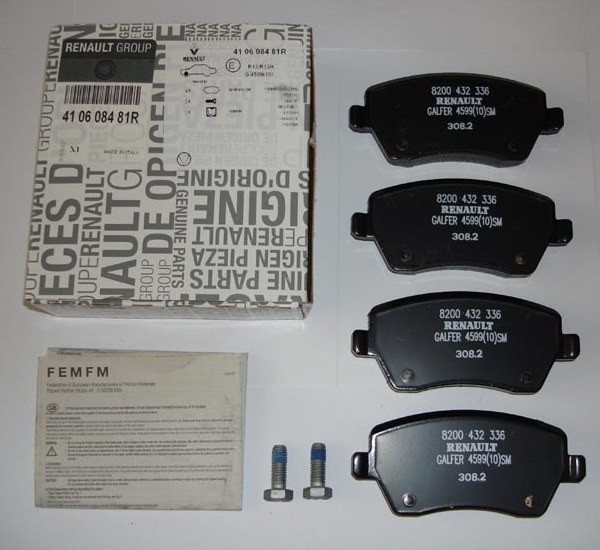 На Рено Дастер производитель рекомендует устанавливать оригинальные передние колодки производства Renault Group, показанные ниже на фото.
