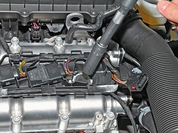Последнюю свечу просто так достать не получится, нужно отсоединить разъем питания.