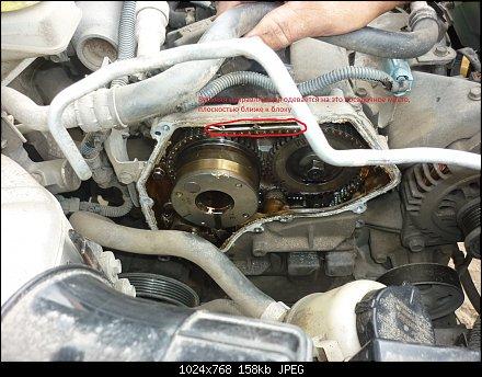 Обратите внимание, коленвал нельзя крутить против часовой стрелки, поскольку цепь ГРМ может натянуться в противоположную сторону, продавить натяжитель и проскочить (следовательно, собьются метки).